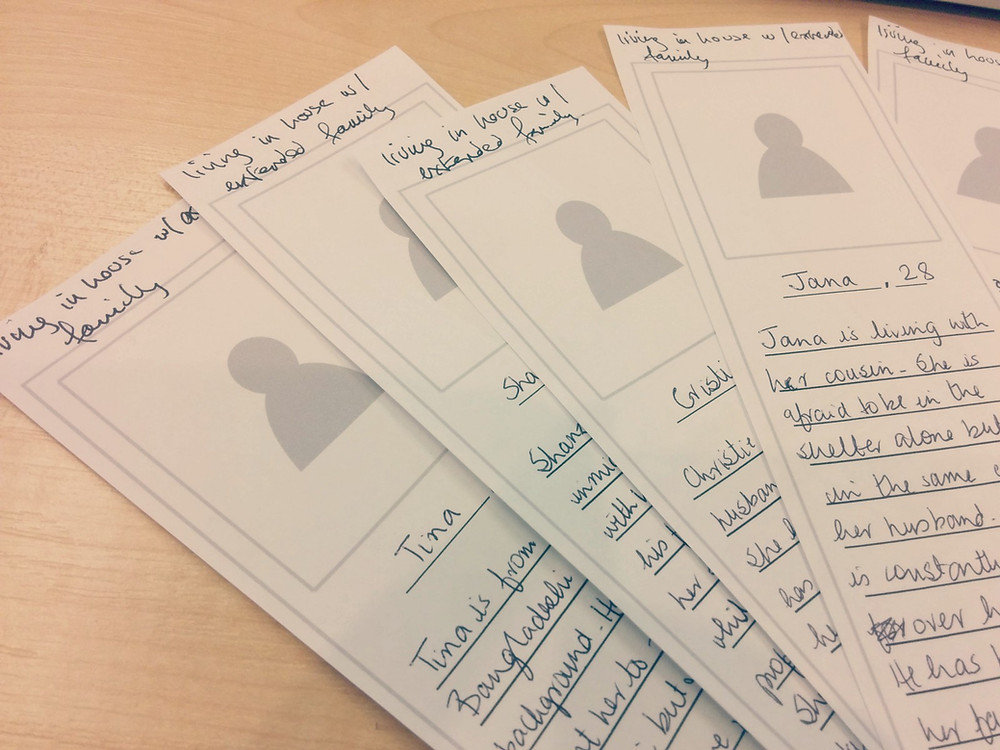 2. Created personas to show a range of women, in different stages of their abusive relationships, who would be using design proposals at the end of the project.