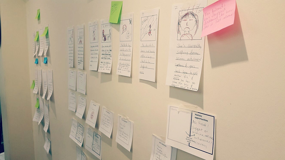 Finally, we worked in teams of 3 or 4 to create a user journey to show a day in the life of a woman who has survived or is currently experiencing domestic violence. Policy Lab UK define User Journeys as,